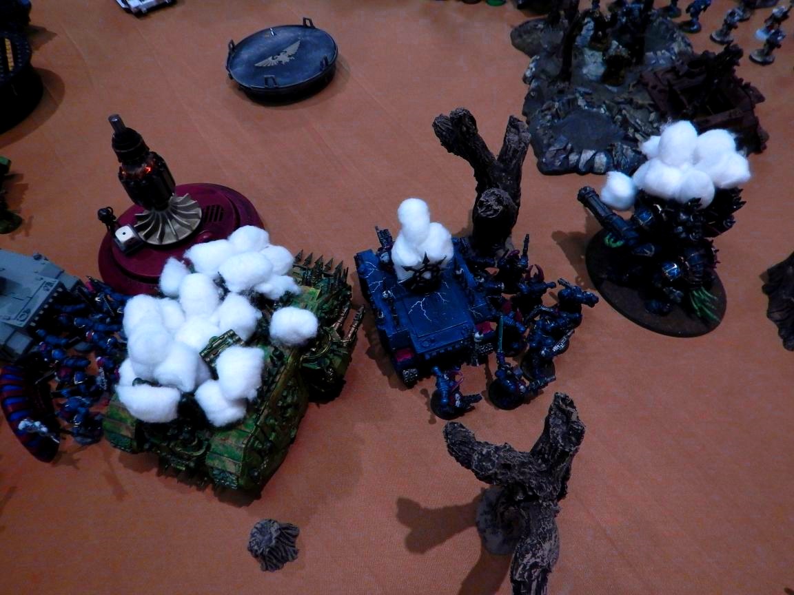 The Death Guard moved forward and popped smoke. The Night Lords and the Iron Warriors took pot shots at the Imperial Forces doing little damage.